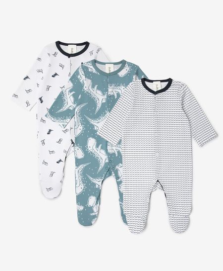 Свобода и комфорт с первых дней жизни! Комплект из 3-х комбинезонов-слипов с закрытыми ножками, специальными манжетами, несущими функцию антицарапок, и оригинальными принтами в бело-голубой цветовой гамме — достойная замена распашонкам и пелёнкам, позволяющая малышу быть активным и с интересом познавать окружающий мир. Комбинезоны выполнены из мягкого хлопкового трикотажа, который гарантирует максимальный комфорт, уют и безопасную эксплуатацию.
