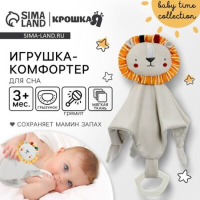 Комфортер — игрушка для сна новорожденных, Крошка Я «Львенок Леон», погремушка, прорезыватель, серый. Комфортер — это специальная мягкая игрушка в виде небольшого одеяльца, которой укрывают малыша, чтобы он чувствовал себя уютно во время сна. Секрет в том, что ткань впитывает запах мамы при взаимодействии с предметом и создает ощущение, что близкий человек рядом. Положите крохе в кроватку эту милую вещицу, и процесс засыпания будет проходить проще. Такое изделие подойдет ребенку не только для крепкого сна, но и в качестве первой игрушки. Комфортер выполнен из плюшевой ткани, мягкой и приятной на ощупь.