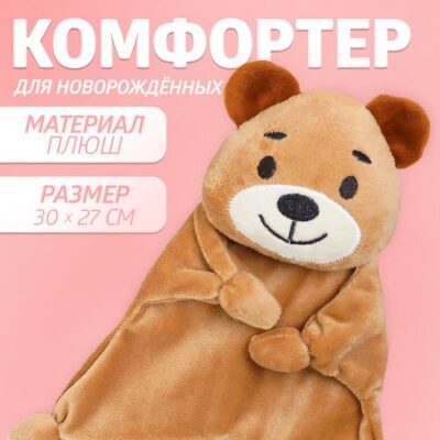 Комфортер — игрушка для сна новорожденных «Мишутка», 30×27 см. Комфортер — это специальная мягкая игрушка в виде небольшого одеяльца, которой укрывают малыша, чтобы он чувствовал себя уютно во время сна. Секрет в том, что ткань впитывает запах мамы при взаимодействии с предметом и создает ощущение, что близкий человек рядом. Положите крохе в кроватку эту милую вещицу, и процесс засыпания будет проходить проще. Такое изделие подойдет ребенку не только для крепкого сна, но и в качестве первой игрушки, так как оно не имеет твердых или острых деталей. Комфортер выполнен из плюшевой ткани, мягкой и приятной на ощупь.