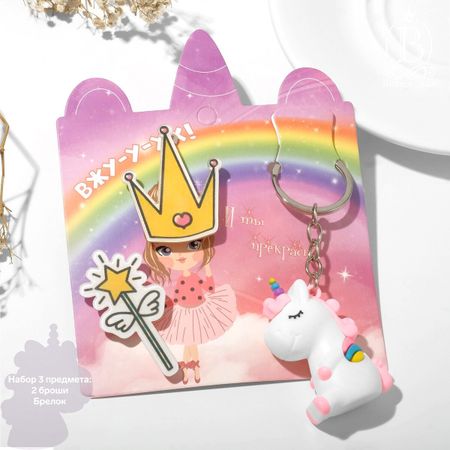 Комплект детский "Выбражулька" 3 предмета: 2 броши, брелок, волшебство, цветной. Комплект бижутерии "Выбражулька" из 2 брошей и брелока — отличный подарок маленькой принцессе, который украсит как обладательницу данного комплекта, так и будет красивым аксессуаром для рюкзачка, одежды и/или ключей.