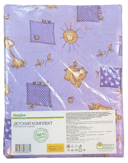 Комплект постельного белья детский Каждый день бязь, 110×140 см