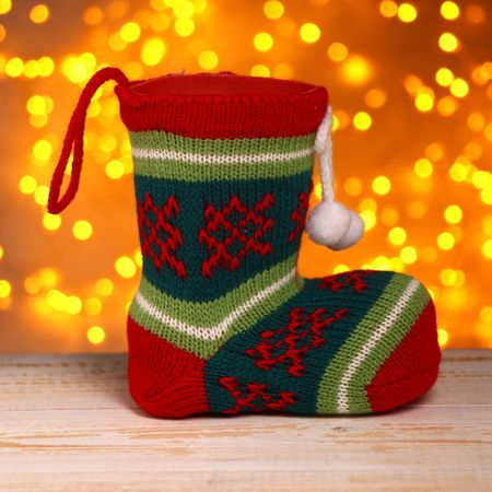 Конфетница «Сапожок», вязаный носок, с помпонами. Яркая и праздничная конфетница «Сапожок» с помпонами — это не просто емкость для сладостей, но и стильный элемент новогоднего декора. Конфетница изготовлена из прочного полиэстера и обладает насыщенными новогодними оттенками, который создает атмосферу тепла и уюта. Особенности конфетницы <ul> <li> Форма сапожка — классический новогодний символ, который идеально впишется в любой интерьер.</li> <li> Конфетница достаточно вместительная, чтобы наполнить ее сладостями.</li> <li> Легко чистится, что позволяет сохранять конфетницу в идеальном состоянии.</li> </ul> Конфетница «Сапожок» с помпонами станет отличным подарком на Новый год и ярким декором для праздничного стола или камина.