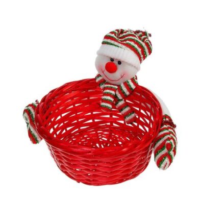 Конфетница «Снеговичок», полосатая шапочка, вместимость 1000 грамм. Сладости станут самым необыкновенным подарком, если оформить их оригинально. Конфетница «Снеговичок», полосатая шапочка, вместимость 1000 грамм сделает ваш презент особенным и запоминающимся. Наполните корзинку конфетками и поставьте на праздничный стол. Обычное угощение, преподнесенное таким образом, сразу превратится в настоящий сюрприз! Красочная плетеная вазочка создаст по-новогоднему уютную атмосферу, украсит интерьер и принесет много позитивных эмоций! <b> Вместимость: 1000 г. </b>