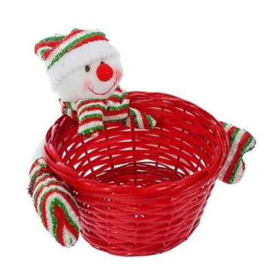 Конфетница «Снеговичок», полосатая шапочка, вместимость 500 г. Сладости станут самым необыкновенным подарком, если оформить их оригинально. Конфетница «Снеговичок», полосатая шапочка, вместимость 500 г сделает ваш презент особенным и запоминающимся. Наполните корзинку конфетками и поставьте на праздничный стол. Обычное угощение, преподнесенное таким образом, сразу превратится в настоящий сюрприз! Красочная плетеная вазочка создаст по-новогоднему уютную атмосферу, украсит интерьер и принесет много позитивных эмоций! <b> Вместимость: 500 г. </b>