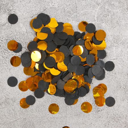 Конфетти «Золото», 20 г, d=1,1 см. Конфетти создадут атмосферу карнавала! Красочные кружочки сделают ваше выступление или поздравление эффектным — наберите их в ладони и в ключевой момент подбросьте вверх. Они окутают всех вокруг разноцветным облачком. Компактный пакетик можно взять с собой куда угодно. С этим атрибутом легко произвести фурор на любой вечеринке или привнести нотку праздника в обычные дни.