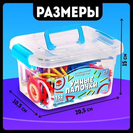 Конструктор «Умные палочки», 152 детали. Конструктор «Умные палочки» — набор из множества деталей в виде геометрических фигур и палочек-сцепок. Благодаря такой форме элементов можно собирать фигуры любой формы — фантазии нет границ! <b> Особенности конструктора</b> <ul> <li> В комплект входит 152 детали.</li> <li> Форма элементов открывает широкий простор для фантазии. Для новичков в комплекте есть брошюра с примерами сборки.</li> <li> Элементы изготовлены из высококачественной пластмассы, надежно соединяются между собой и разбираются без особого труда.</li> </ul> <b> Не только увлекательно, но и полезно!</b> Конструирование способствует многогранному развитию детей. <ul> <li> Пространственное мышление — ребенок познает соотношения элементов: право, лево, выше, ниже.</li> <li> Конструкторские способности — осознание, каким образом создаются различные объекты.</li> <li> Образное мышление — стиль мышления, который отвечает за создание определенного образа, формирующегося в представлении ребенка.</li> <li> Мелкая моторика, глазомер — работая с конструктором, малыш развивает мелкие мышцы руки, учится соизмерять мышечное усилие, тренирует глаза.</li> <li> Творческие способности и воображение.</li> </ul>