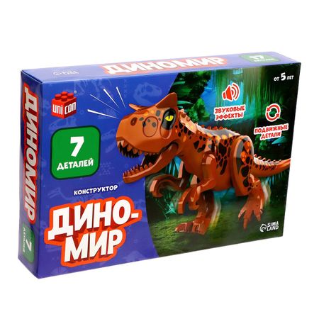 Конструктор «Диномир», 7 деталей, аллозавр, звук. С конструктором «Диномир» ребенок соберет подвижную модель динозавра со звуковыми эффектами и окунется в захватывающий мир доисторических гигантов! <b> Особенности конструктора</b> <ul> <li> Состоит из 7 деталей.</li> <li> Элементы изготовлены из высококачественной пластмассы, надежно соединяются между собой и разбираются без особого труда.</li> <li> Фигурка издает звуки динозавра. Звуковые эффекты работают от 3 батареек типа LR41 (в комплекте).</li> <li> Есть подвижные элементы.</li> </ul> <b> Увлекательно и полезно!</b> Конструируя, ребенок развивает внимательность, воображение, логическое и образное мышление. Предназначен для детей старше 5 лет.