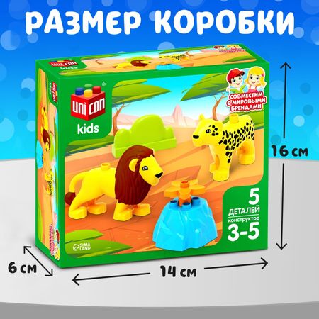 Конструктор «Лев и леопард», 5 деталей. Детский блочный конструктор — это волшебный мир строительства и возможность для развития малыша! Этот набор из крупных пластиковых деталей поможет потренировать мелкую моторику, воображение и логическое мышление ребенка. Конструктор «Лев и леопард» станет для малыша первым знакомством с сюжетно-ролевыми играми, поможет больше узнать о природе и диких животных Африки. <b> Особенности</b> <ul> <li> В наборе 5 деталей разных форм и размеров. Из них можно собрать весь сюжет, изображенный на коробке.</li> <li> Все элементы изготовлены из высококачественной нетоксичной пластмассы.</li> <li> Совместим с конструкторами мировых брендов.</li> <li> Рекомендован для детей от 3 лет.</li> </ul> <b> Играем с пользой</b> Конструирование способствует многогранному развитию детей. <ul> <li> Пространственное мышление — ребенок познает соотношения элементов: справа, слева, выше, ниже.</li> <li> Конструкторские способности — осознание, каким образом создаются различные объекты.</li> <li> Образное мышление — стиль мышления, который отвечает за создание определенного образа, формирующегося в представлении ребенка.</li> <li> Мелкая моторика, глазомер — работая с конструктором, малыш развивает мелкие мышцы руки, учится соизмерять мышечное усилие.</li> <li> Творческие способности и воображение.</li> </ul>