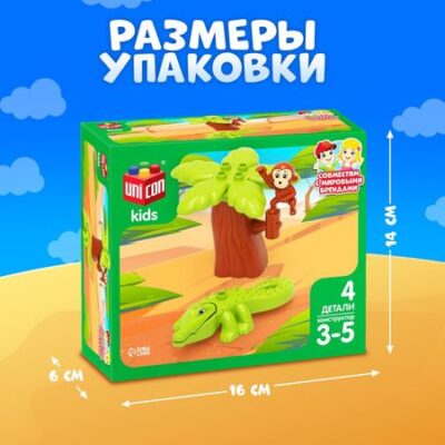 Конструктор «Обезьяна и крокодил», 4 детали. Детский блочный конструктор — это волшебный мир строительства и возможность для развития малыша! Этот набор из крупных пластиковых деталей поможет потренировать мелкую моторику, воображение и логическое мышление ребенка. Конструктор «Обезьяна и крокодил» станет для малыша первым знакомством с сюжетно-ролевыми играми, поможет лучше узнать о природе и диких животных Африки. <b> Особенности</b> <ul> <li> В наборе 4 детали разных форм и размеров. Из них можно собрать весь сюжет, изображенный на коробке.</li> <li> Все элементы изготовлены из высококачественной нетоксичной пластмассы.</li> <li> Совместим с конструкторами мировых брендов.</li> <li> Рекомендован для детей от 3 лет.</li> </ul> <b> Играем с пользой</b> Конструирование способствует многогранному развитию детей. <ul> <li> Пространственное мышление — ребенок познает соотношения элементов: справа, слева, выше, ниже.</li> <li> Конструкторские способности — осознание, каким образом создаются различные объекты.</li> <li> Образное мышление — стиль мышления, который отвечает за создание определенного образа, формирующегося в представлении ребенка.</li> <li> Мелкая моторика, глазомер — работая с конструктором, малыш развивает мелкие мышцы руки, учится соизмерять мышечное усилие.</li> <li> Творческие способности и воображение.</li> </ul>