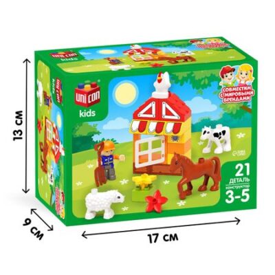 Конструктор «Ферма», 21 деталь. Детский блочный конструктор — это волшебный мир строительства и возможность для развития малыша! Этот набор из крупных пластиковых деталей поможет потренировать мелкую моторику, воображение и логическое мышление ребенка. <b> Особенности конструктора</b> <ul> <li> Создан из прочного и безопасного пластика ярких цветов.</li> <li> В наборе 21 деталь разных форм и размеров. Из них можно собрать весь сюжет, изображенный на коробке.</li> <li> Совместим с конструкторами мировых брендов.</li> </ul> <b> Увлекательно и полезно!</b> Конструирование способствует многогранному развитию детей. <ul> <li> Пространственное мышление — ребенок познает соотношения элементов: справа, слева, выше, ниже.</li> <li> Конструкторские способности — осознание, каким образом создаются различные объекты.</li> <li> Образное мышление — стиль мышления, который отвечает за создание определенного образа, формирующегося в представлении ребенка.</li> <li> Мелкая моторика, глазомер — работая с конструктором, малыш развивает мелкие мышцы руки, учится соизмерять мышечное усилие.</li> <li> Творческие способности и воображение.</li> </ul>