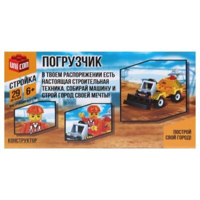 Конструктор «Погрузчик», 29 деталей. <b> Строим город своей мечты! </b> Представьте, что вы стали главным архитектором мегаполиса. Теперь в вашем распоряжении есть настоящая строительная техника. Соберите «Погрузчик» торговой марки UNICON и начинайте строить город своей мечты! <b> Продуманно все до мелочей! </b> <ul> <li> В комплект входит 29 деталей. </li> <li> Элементы изготовлены из высококачественной пластмассы, надежно соединяются между собой и разбираются без особого труда. </li> </ul> <b> Не только интересно, но и полезно! </b> Следуйте подробной инструкции, и вы соберете мощную строительную технику, с которой любая застройка станет легкой и интересной. Конструируя, ребенок развивает мелкую моторику рук, познавательную активность и воображение, становиться усидчивее и внимательнее. Товар предназначен для детей старше 6 лет.
