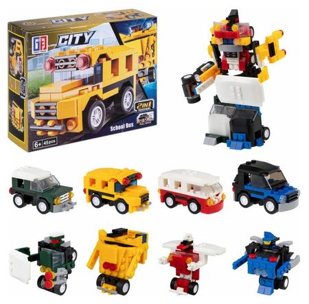 Детская развивающая игрушка для конструирования "Blockformers" 2 в 1 от бренда 1TOY представляет собой сборную модель машинки, которая трансформируется в робота. В ассортименте представлено 4 вида: школьный автообус, красный фургон, внедорожник, синий автомобиль. Конструктор соедржит от 45 до 50 деталей, в зависимости от вида машинки и предназначен для детей от 6-ти лет. Материал: полимерные материалы.