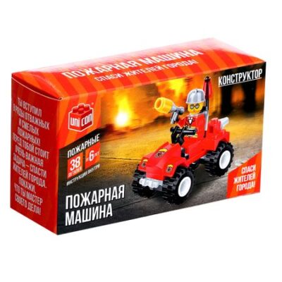 Конструктор «Пожарная машина», 38 деталей. <b> Спасаем город от пожаров! </b> Сынок мечтает о карьере спасателя? С конструктором торговой марки UNICON малыш соберет пожарную автоцистерну и незамедлительно отправится на тушение возгораний. Набор содержит 38 деталей и позволяет сконструировать автомобиль спецслужбы и фигурку работника в огнеупорном костюме. Яркие детали пробудят воображение маленького фантазера, он придумает множество игровых сюжетов и вместе с пожарным вступит в борьбу со стихией. <b> Продуманно все до мелочей! </b> Элементы изготовлены из высококачественной пластмассы, надежно соединяются между собой и разбираются без особого труда. Типовые детали конструктора совместимы с наборами Ausini, Sluban, Cogo, Peizhi, Jie Star. Объединяйте, фантазируйте и создавайте новое!