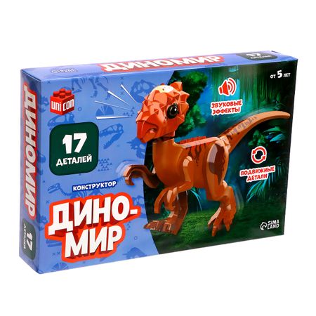 Конструктор «Диномир», 17 деталей, овираптор, звуковые эффекты. С конструктором «Диномир» ребенок соберет подвижную модель динозавра со звуковыми эффектами и окунется в захватывающий мир доисторических гигантов! <b> Особенности конструктора</b> <ul> <li> Состоит из 6 деталей.</li> <li> Элементы изготовлены из высококачественной пластмассы, надежно соединяются между собой и разбираются без особого труда.</li> <li> Фигурка издает звуки динозавра. Звуковые эффекты работают от 3 батареек типа LR41 (в комплекте).</li> <li> Есть подвижные элементы.</li> </ul> <b> Увлекательно и полезно!</b> Конструируя, ребенок развивает внимательность, воображение, логическое и образное мышление. Предназначен для детей старше 5 лет.