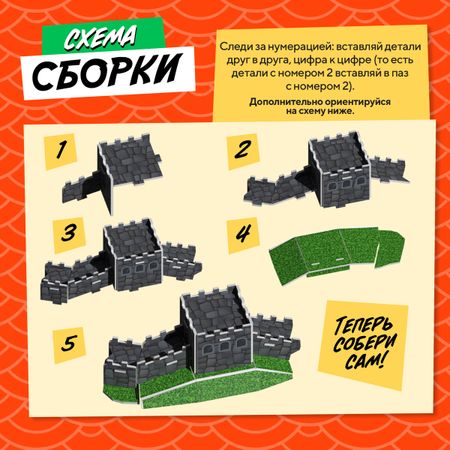 Конструктор 3D «Чудеса света. Великая Китайская стена». Загадки древности и чудеса света теперь в ваших руках! Узнавайте новое и расширяйте кругозор с 3D-конструктором «Чудеса света. Великая Китайская стена» — знакомьтесь с историческим наследием древней цивилизации. Такой конструктор станет идеальным подарком для любознательных умов и заядлых коллекционеров. <b> Особенности конструктора</b> <ul> <li> Для сборки не потребуется клей или ножницы. Достаточно выдавить картонные элементы с листа-основы и, руководствуясь числовыми обозначениями на деталях, последовательно соединить их друг с другом.</li> <li> Подойдет детям от 5 лет и взрослым.</li> <li> Все элементы выполнены из качественного вспененного материала и картона.</li> </ul> <b> Увлекательно и полезно!</b> 3D-конструктор не только развлекает, но и развивает мелкую моторику и пространственное мышление. Что может быть лучше, чем совмещать приятное с полезным?