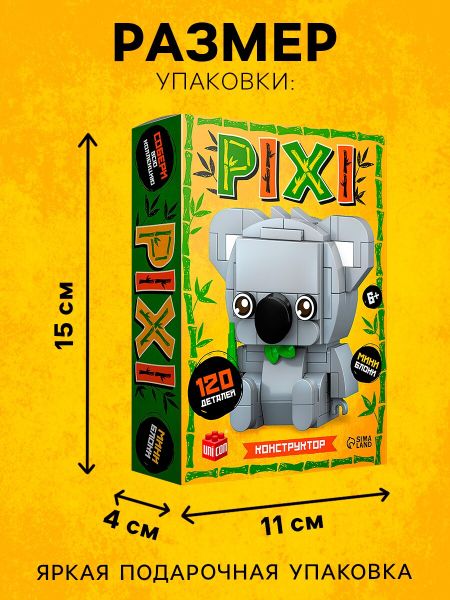 Конструктор блочный «PIXI. Коала», животные, мини блоки, 120 деталей. Собери очаровательного лесного друга! <strong> Блочный конструктор «PIXI. Коала»</strong> – это компактный набор для создания фигурки милого животного. Маленькие детали точно соединяются, помогая воссоздать образ коалы с высокой детализацией. <ul> <li> <strong> 120 мини-блоков для точной сборки:</strong> Компактные элементы позволяют проработать мельчайшие детали, делая фигуру реалистичной.</li> <li> <strong> Развитие моторики и внимания:</strong> Работа с мини-блоками улучшает координацию движений, концентрацию и пространственное мышление.</li> <li> <strong> Тематика животных:</strong> Собирая фигурку, ребенок знакомится с миром дикой природы и расширяет кругозор.</li> <li> <strong> Прочные соединения:</strong> Детали надежно фиксируются, создавая устойчивую конструкцию, которую можно использовать для декора.</li> <li> <strong> Компактный формат:</strong> Готовую модель удобно хранить или брать с собой, чтобы играть и конструировать в любом месте.</li> </ul> <strong> Миниатюрная модель своими руками:</strong> Этот конструктор подарит увлекательный процесс сборки и станет отличным выбором для любителей животных и творческих заданий. Создай свою коллекцию лесных обитателей!