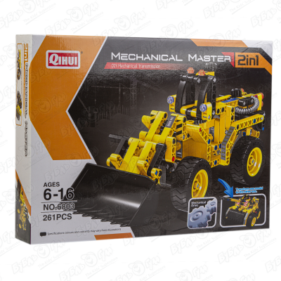 Конструктор Бульдозер-танк Qihui Mechanical Master на механическом приводе 2в1 261дет. с 6лет.