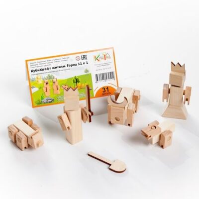 Как развить у ребёнка воображение? Авторские фигурки бренда «Кубиград» — это жители сказочной страны Кубикрафт. Фигурки жителей города 11 в 1 переносят ребёнка в воображаемый мир, где собранные им персонажи живут своей жизнью.В комплекте: 31 деталь (собирается 11 персонажей).Назначение. Развитие воображения, моторики пальцев. Используется для сюжетно-ролевых игр на сказочные темы.Качество. Детали конструктора гладкие, ровные. Каждая аккуратно отшлифована. Изделие экологически безопасное и сертифицированное.Размеры в собранном виде: 2 × 2 × 8 см.Для детей старше 3 лет.