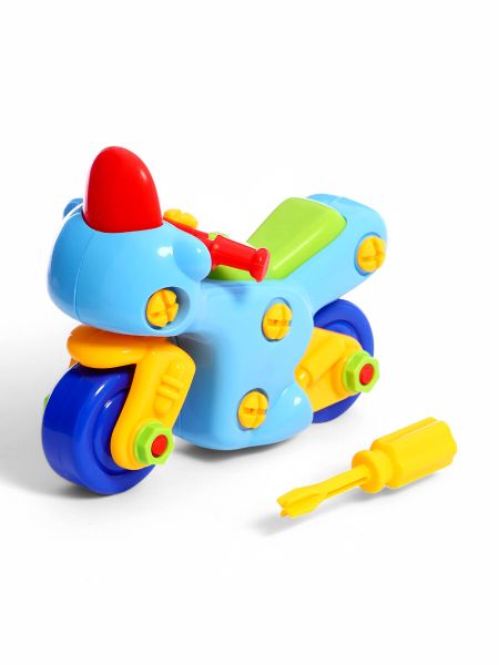Конструктор для малышей «Мотоцикл», 27 деталей. <b> Конструируем и играем</b> Винтовой конструктор — это увлекательная, яркая игрушка, которая обязательно порадует ребенка! Ведь малыш самостоятельно соберет ее с помощью инструментов, имеющихся в наборе. Занятия с конструктором помогут развить воображение, эмоциональное, визуальное восприятие, мелкую моторику, координацию движений и потренируют навыки конструирования. <b> Особенности</b> Конструктор тренирует важные навыки. Ребенок с помощью отверток, имеющихся в наборе, сможет сам собрать игрушку. <b> Неоспоримая польза</b> Ребенок получит необходимые бытовые знания, научится закручивать шурупы, болты, шестеренки, пуговки, а также придумывать новые конструкции. Ребенок с удовольствием будет играть с получившейся игрушкой.