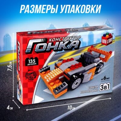 Конструктор гоночная машина 3 в 1 UNICON Гонка, 135 деталей, 6+. Детали конструктора UNICON изготовлены из высококачественной пластмассы. <b> Особенности </b> <ul> <li> Все элементы надежно соединяются между собой и разбираются без особого труда. </li> <li> Набор совместим с конструкторами Ausini, QMAN, JISI BRICKS и другими аналогами. </li> </ul> <b> Не только увлекательно, но и полезно!</b> По подробной инструкции ребенок с легкостью воспроизведет сюжет с коробки. Конструируя, малыш развивает мелкую моторику рук, познавательную активность и воображение, становиться усидчивее и внимательнее. Товар предназначен для детей старше 6 лет.