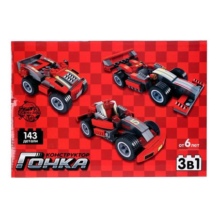 Конструктор гоночная машина 3 в 1 UNICON Гонка, 143 детали, 6+. Детали конструктора UNICON изготовлены из высококачественной пластмассы. <b> Особенности </b> <ul> <li> Все элементы надежно соединяются между собой и разбираются без особого труда. </li> <li> Набор совместим с конструкторами Ausini, QMAN, JISI BRICKS и другими аналогами. </li> </ul> <b> Не только увлекательно, но и полезно!</b> По подробной инструкции ребенок с легкостью воспроизведет сюжет с коробки. Конструируя, малыш развивает мелкую моторику рук, познавательную активность и воображение, становиться усидчивее и внимательнее. Товар предназначен для детей старше 6 лет.