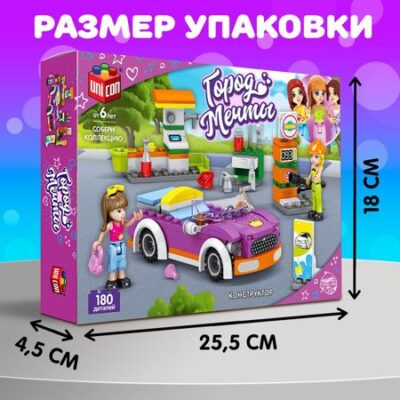 Конструктор Город Мечты «Стильная заправка», 180 деталей. <b> Мечта каждой девочки!</b> Конструктор UNICON Город мечты, это место где мечтает побывать каждая девочка. Соберите все игровые сюжеты розвого мира! <b> Особенности:</b> <ul> <li> Элементы изготовлены из высококачественной пластмассы, надежно соединяются между собой и разбираются без особого труда.</li> <li> Совместим с конструкторами LEGO и его аналогами.</li> </ul> <b> Не только увлекательно, но и полезно!</b> Следуйте подробной инструкции, и ребенок с легкостью соберет сюжет. Конструируя, ребенок развивает мелкую моторику рук, познавательную активность и воображение, становиться усидчивее и внимательнее. Товар предназначен для детей старше 6 лет.