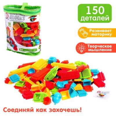 Конструктор игольчатый BRISTLES, 150 деталей. Игольчатый конструктор — тактильный набор из множества деталей, который позволит реализовать разнообразные идеи юного строителя. <b> Особенности</b> <ul> <li> Игольчатые детали легко соединяются друг с другом.</li> <li> Элементы выполнены из безопасного пластика.</li> </ul> Конструктор поможет ребенку развить мелкую моторику рук, логическое и пространственное мышление, творческие способности, а также научиться соотносить форму и величину предметов. Предназначен для детей от 3 лет.