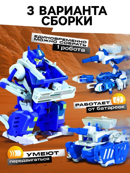 Конструктор электронный «Скайбот» 3 в 1, работает от батареек. <b> Осваиваем технологии будущего</b> «Скайбот» — это электронный конструктор, с 3 вариантами сборки. Игрушка трансформируется в танк, робота или боевого скорпиона. Соберите модель согласно инструкции. Вставьте элемент питания в игрушку и наблюдайте за движениями робота. Устройство работает от 1 батарейки типа ААА. <b> Неоспоримая польза</b> Занимательные опыты вызовут у ребенка интерес к изобретениям и новым открытиям. Маленький ученый расширит кругозор, получит конструкторские навыки, разовьет образное и логическое мышление, воображение и мелкую моторику.