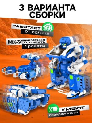 Конструктор электронный «Робот», 3 в 1, работает от солнечной батареи, 61 деталь, 1 лист наклеек. <strong> Скорпион, танк или робот — соберите свою модель! </strong> Представляем вашему вниманию занимательный набор для опытов 3 в 1 серии «Эврики: Прогрессивные технологии». Комплект позволит сконструировать не одну игрушку, а 3 различные модели: скорпиона, танка или робота. Создайте своего персонажа и наслаждайтесь игрой! <strong> В чем уникальность? </strong> Из одних и тех же деталей можно собрать три комбинации. Каждая модель способна двигаться, и при этом батарейки ей не нужны. Робот активизируется с помощью солнечной батареи. Поставьте игрушку так, чтобы на нее падал солнечный свет, и она оживет! <strong> Неоспоримое преимущество! </strong> Альтернативные источники энергии — то, что ждет нас в недалеком будущем. Поэтому именно сейчас идеальное время рассказать ребенку о них. Игры в «Прогрессивные технологии» научат ребенка конструированию, разовьют логику, воображение и мелкую моторику. <b> Дополнительно потребуются: </b> <ul> <li> отвертка, </li> <li> кусачки. </li> </ul> <b> В наборе вы найдете: </b> <ul> <li> 2 шестерни; </li> <li> солнечную панель с двигателем; </li> <li> шестерню с валом; </li> <li> круглый вал; </li> <li> саморез; </li> <li> саморез с шайбой; </li> <li> губку; </li> <li> наклейки. </li> </ul> <b> Размеры предметов:</b> <ul> <li> скорпион 13,5 х 10,2 х 10,2 см,</li> <li> танк 7,5 х 9,5 х 5,7 см,</li> <li> робот 8,7 х 6,3 х 10,2 см.</li> </ul> Товар рекомендован для детей старше 8 лет.
