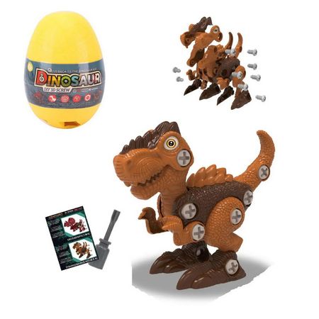 Этот необычный пластиковый динозаврик-конструктор спрятан внутри большого яйца. Внутри яйца спрятаны динозаврика 3-х видов: тираннозавр, трицератопс, птеродактиль.