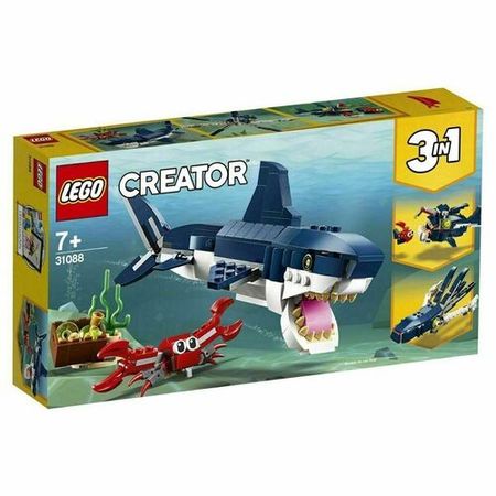 Наслаждайся приключениями в открытом море с набором «Обитатели морских глубин» LEGO® Creator 3 в 1 (31088), который включает в себя реалистичную сине-белую фигурку акулы с открывающейся пастью с множеством острых, как бритвы, зубов, подвижными плавниками, полностью подвижным телом и светящимися в темноте глазами.Кроме того, в набор входят фигурка краба и сундук с сокровищами. Из каждого набора LEGO® Creator 3 в 1 можно собрать три различных модели. Собери фигурки Акулы и краба, а затем преврати из в Кальмара с подвижными щупальцами или Рыбу-удильщика с огромной пастью, чтобы придумать еще более захватывающие приключения на дне моря.Наслаждайся играми с тремя различными моделями, которые можно собрать из этого набора LEGO® Creator 3 в 1. Собери акулу, краба и сундук с сокровищами и затем перестрой их в Кальмара с подвижными щупальцами или Рыбу-удильщика с огромной пастью.В набор «Обитатели морских глубин» входят сборные фигурки ужасной акулы с открывающейся пастью, полной острых, как бритва, зубов, подвижными плавниками, полностью подвижным телом и светящимися в темноте глазами, а также сборная фигурка краба и сундук с сокровищами.Взгляни на эту крутую темно-сине-белую Акулу!Открой пасть акулы, чтобы посмотреть на ее ужасные острые зубы.Защити этого милого краба и его сундук с сокровищами.Собери альтернативные модели из деталей этого набора. На сайте LEGO также доступны инструкции по сборке кита.Размеры Акулы: более 8 см в высоту, 21 см в длину и 9 см в ширину.Размеры Краба: более 3 см в длину и 11 см в ширину.Размеры Кальмара: более 4 см в высоту, 18 см в длину и 22 см в ширину.Размеры Рыбы-удильщика: более 5 см в высоту, 14 см в длину и 8 см в ширину.