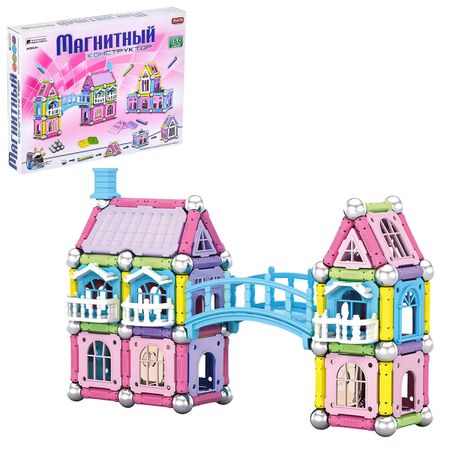 Конструктор магнитный «Построй свой дом», 150 деталей. Из разнообразных элементов магнитного конструктора ребенок с легкостью возведет замок, состоящий из 2 башен. Постройки юный инженер соединит между собой мостиком. Каркас собирается из металлических шариков и пластиковых палочек, которые надежно сцепляются между собой, а затем в образовавшиеся пазы вставляются окна и двери будущего дома. <b> В наборе 150 деталей:</b> <ul> <li> 30 шариков;</li> <li> 8 изогнутых палочек длиной 3 см;</li> <li> 38 палочек длиной 2,5 см;</li> <li> 74 элемента замка. </li> </ul> Для детей старше 4 лет.