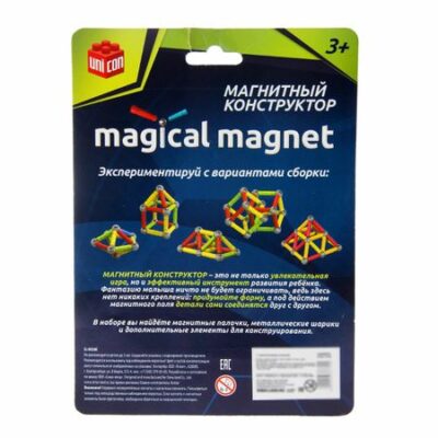 Конструктор магнитный «Треугольник», 28 деталей. <b> Учимся весело</b> Думаете, наука это сложно? С невероятным магнитным конструктором малыш узнает много интересного о физических явлениях, магнетизме и геометрии. Из ярких палочек и металлических шариков получится собрать необычные трехмерные модели: для этого комбинируйте детали, трансформируйте фигуры и не бойтесь экспериментировать! <b> Почувствуйте силу притяжения</b> Игры с магнитным конструктором пробудят фантазию ребенка, поспособствуют развитию воображения, мелкой моторики, эмоционального восприятия, формированию пространственного и логического мышления. В наборе 28 деталей: 10 шариков, 18 палочек. Размеры элементов: Длина палочки: 2,7 см. Диаметр шара: 0,7 см. Для детей старше 6 лет.
