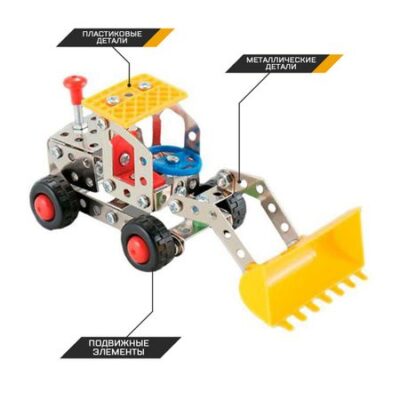 Конструктор металлический «Строительная техника», 5 в 1, 139 деталей. <strong> Учимся конструировать! </strong> Металлические конструктор это то, что нужно маленькому инженеру! Эта увлекательная игрушка состоит из металлических деталей и имеет полный набор шурупов, винтиков и гаек. Для мальчика конструктор станет прекрасной основой для получения <strong> необходимых бытовых знаний:</strong> он научится закручивать гайки, затягивать болты и придумывать новые конструкции. Собирать фигурку малышу будет просто — накладывая друг на друга круглые отверстия в пластинах, он с помощью настоящих инструментов сможет закрепить их винтиками и гайками. Сынок с удовольствием будет играть полученной игрушкой, а когда надоест, сможет проявить фантазию и придумать что-то совершенно новое. <strong> Преимущества металлического конструктора: </strong> <ul> <li> он развивает мелкую моторику рук;</li> <li> прививает усидчивость;</li> <li> стимулирует познавательную активность; </li> <li> развивает внимание и воображение.</li> </ul> <strong> Товар предназначен для детей старше 5 лет.</strong> <strong> Развиваемся, играя! </strong>
