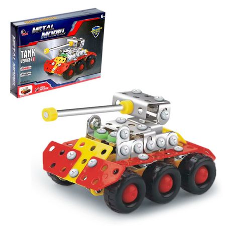 Конструктор металлический «Танк», 140 деталей. Металлический конструктор станет прекрасной основой для получения необходимых бытовых знаний, а также спроектирует собственные инновационные модели. По подробной инструкции ребенок соберет модель. Для этого необходимо лишь наложить детали друг на друга и скрепить их через отверстия в пластинах винтом и гайкой. В процессе игры дошкольник научится обращаться с инструментами, пользоваться отверткой, затягивать болты и придумывать новые конструкции.
