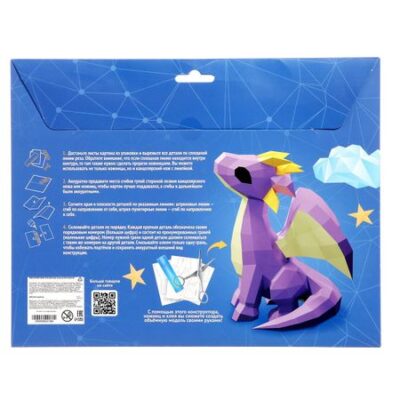 Конструктор полигональный «Дракон», 151 деталь. Полигональный 3D-конструктор — это множество небольших элементов из бумаги, которые склеиваются между собой и превращаются в объемную фигуру. <b> Как собрать полигональную фигуру</b> <ul> <li> Вырежьте все детали по сплошной линии.</li> <li> Продавите места сгиба.</li> <li> Сгибайте края и плоскости деталей по указанным линиям. Штриховые линии — сгиб на себя. Штрихпунктирные — от себя.</li> <li> Скрепите все детали клеем ПВА.</li> </ul> <b> Неоспоримая польза</b> Игры с конструктором разовьют у ребенка мелкую моторику, внимательность, воображение, логическое и образное мышление. Товар предназначен для детей старше 3 лет.