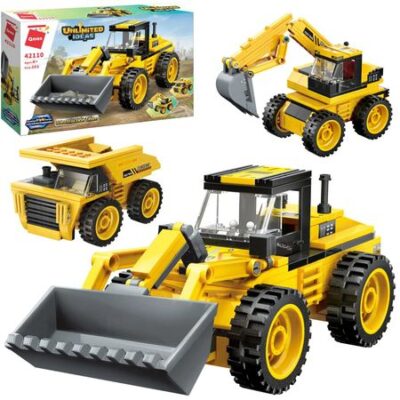 Из конструктора 3в1 из серии «Unlimited Ideas» ребенок может поочередно собрать фигурки трех строительных машинки: трактор или экскаватор или самосвал.