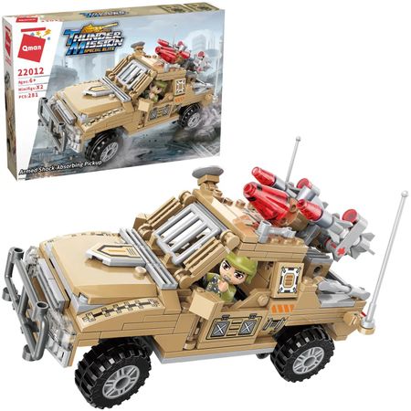 Из конструктора из серии «Thunder Mission» ребенок может собрать военный пикап, оборудованный ракетной установкой.Размер машины в собранном виде: 17,5х10х8 см.