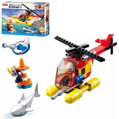 Конструктор Sluban из серии «Город. Пляжный патруль» Конструктор Sluban позволит ребенку собрать вертолет службы спасения, пилот которого торопится спасти девушку от нападения хищной зубастой акулы.