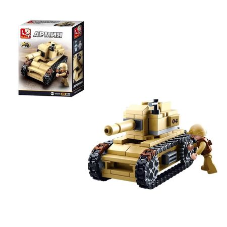 Конструктор Sluban из серии «Армия» позволит ребенку собрать Танк. Набор дополняют фигурка солдатика, который умело управляет им. Длина собранного танка: 10,1 см.