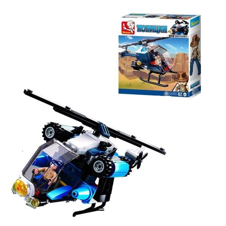 Конструктор Sluban из серии «Полиция» позволит ребенку собрать модель полицейского вертолета. Для большей реалистичности, лопасти оснащены механизмом для вращения.