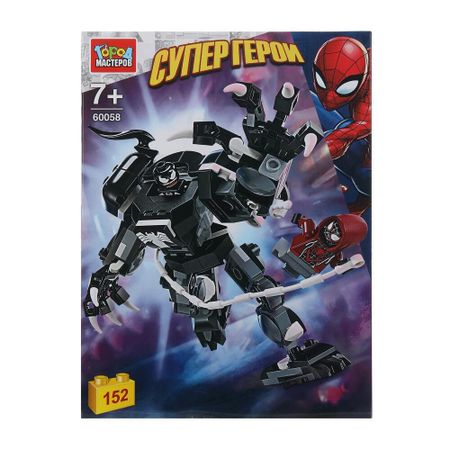Конструктор супергерои Город мастеров 60058-ZH. Конструктор из коллекции «Супергерои» ТМ «Город мастеров» станет прекрасным подарком для маленького фантазера.<br> <br> Особенности и комплектация:<br> — 152 детали<br> — подвижные детали<br> — 2 мини-фигурки в комплекте<br> — все детали легко и плотно соединяются между собой<br> — совместим с моделями конструкторов мировых брендов<br> <br> С помощью данного набора ребенок сможет собрать сцену сражения двух антигероев из известных комиксов. Одна из мини-фигурок помещается внутрь большой, у которой имеются подвижные элементы, что сделает игру с ней еще интереснее. Такой конструктор вдохновит детей на новые увлекательные сюжеты для игр и станет гордостью их коллекции.<br> <br> Игра с конструктором ТМ «Город мастеров» развивает:<br> — мелкую моторику<br> — мышление<br> — внимание<br> — усидчивость<br> — логику<br> <br> Размер упаковки: 20 х 27 х 5 см. Материал: пластмасса.<br> Рекомендовано детям от 7-ми лет.