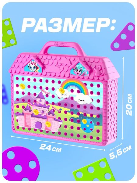 Конструктор в чемоданчике «Волшебный город», с электрическим шуруповертом, 4 карточки, 57 деталей. Увлекательный конструктор-мозаика — то, что надо маленьким любителям всего необычного! Задача малыша: вкручивать болтики и собирать картинки с помощью игровых полей и красочных фигурок. Конструктор станет прекрасной основой для получения необходимых бытовых знаний. Малыш научится закручивать шурупы и придумывать новые конструкции. Ребенок с удовольствием будет играть получившейся игрушкой, а когда надоест, сможет придумать что-то совершенно новое. Уникальная двусторонняя форма чемоданчика, с возможностью разворота на 180 градусов, даст больший простор для фантазии. <b> Преимущества конструктора</b> <ul> <li> Развивает мелкую моторику рук.</li> <li> Прививает усидчивость.</li> <li> Стимулирует познавательную активность.</li> <li> Развивает внимание и воображение.</li> </ul>