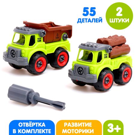 Конструктор винтовой «Фермерский транспорт», набор 2 штуки, с отверткой, 55 деталей. Винтовой конструктор «Фермерский транспорт» — это увлекательный и яркий набор, который обязательно порадует ребенка! Ведь малыш самостоятельно соберет его с помощью инструментов, имеющихся в наборе. Ребенок получит необходимые бытовые знания, научится закручивать шурупы, болты, шестеренки, пуговки, а также придумывать новые конструкции. <b> Особенности</b> <ul> <li> Задача малыша: вкручивать болтики, разбирать и собирать машинку с помощью игровых инструментов.</li> <li> Игрушка изготовлена из качественного пластика, что делает его безопасным для детей.</li> </ul> <b> Неоспоримая польза</b> Занятия с конструктором помогут развить воображение, эмоциональное и визуальное восприятие, мелкую моторику, координацию движений и потренируют навыки конструирования.