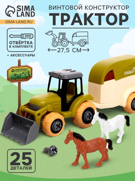 Конструктор винтовой «Трактор с коневозкой», с отверткой, и аксессуарами. Конструктор «Трактор с прицепом для перевозки лошадей» станет отличным подарком для мальчиков от 3 лет. Сборка этого набора превращает игру в увлекательный процесс, который развивает мелкую моторику, логическое мышление и внимание к деталям. Тематика набора — ферма и животные, что делает его интересным и познавательным для ребенка. <b> Особенности</b> <ul> <li> Набор включает детали для сборки трактора и прицепа для транспортировки лошадей.</li> <li> В комплект входит отвертка для самостоятельной сборки модели.</li> <li> Прочные пластиковые элементы подходят для безопасной игры.</li> <li> Подходит для детей от 3 лет, что делает его доступным для самых юных строителей.</li> </ul> <b> В чем польза конструктора?</b> С помощью этого набора ребенок узнает больше о фермерской технике и уходе за животными. Сборка конструктора помогает освоить базовые инженерные навыки, стимулирует воображение и развивает творческое мышление. Трактор и прицеп станут отличным дополнением к сюжетным играм, где маленький мастер сможет сам решать, как использовать свои игрушки. Конструктор «Трактор с прицепом для перевозки лошадей» — это сочетание полезного досуга и ярких игровых впечатлений. Это набор, который увлечет ребенка и подарит радость от самостоятельного творчества.