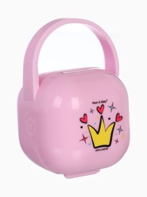 Контейнер для хранения и стерилизации детских сосок и пустышек «Принцесса». В контейнере удобно хранить пустышку, когда вы ее не используете. Контейнер подходит для всех видов пустышек. В нем пустышка не потеряется и не испачкается. Его легко крепить к детской кроватке, коляске, сиденью машины или к вашей сумке.
