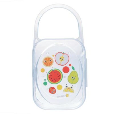 Контейнер для хранения и стерилизации детских сосок и пустышек «Фрукты». В контейнере удобно хранить пустышку, когда вы ее не используете. Контейнер подходит для всех видов пустышек. В нем пустышка не потеряется и не испачкается. Его легко крепить к детской кроватке, коляске, сиденью машины или к вашей сумке.