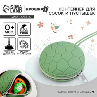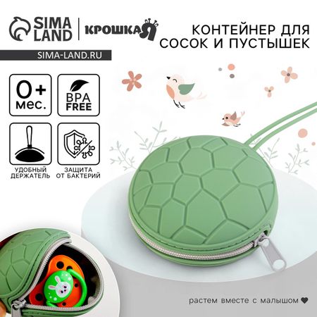 Контейнер для хранения и стерилизации сосок и пустышек, силиконовый, зеленый. В контейнере удобно хранить пустышку, когда вы ее не используете. Контейнер подходит для всех видов пустышек. В нем пустышка не потеряется и не испачкается. Его легко крепить к детской кроватке, коляске, сиденью машины или к вашей сумке.