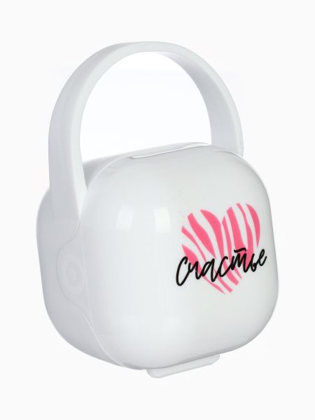 Контейнер для сосок и пустышек «Счастье», белый, Mum&Baby. В контейнере удобно хранить пустышку, когда вы ее не используете. Контейнер подходит для всех видов пустышек. В нем пустышка не потеряется и не испачкается. Его легко крепить к детской кроватке, коляске, сиденью машины или к вашей сумке.