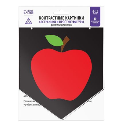 Контрастные картинки для новорожденных «Абстракции и простые фигуры», 10 карт, 0+. <b> Контрастные картинки для новорожденных</b> Занятия с контрастными изображениями способствуют развитию внимания и мышления, знакомят малыша с цветами и образами. В первые месяцы жизни дети видят только черный и белый цвета, ближе к 3 месяцам начинают различать желтый и красный, а затем — синий и зеленый. Этот набор состоит из 10 двухсторонних карточек: с одной стороны вы найдете черно-белые изображения, а с другой — картинки, выполненные в четырех основных цветах. Карточки изготовлены из плотного картона с закругленными уголками для безопасности малыша. Эти картинки можно использовать как в кроватке, так и на пеленальном столике. Специальные отверстия на карточках и ленточка в наборе позволяют сделать яркую гирлянду вдоль бортиков кроватки. Также важно периодически менять порядок картинок в ряду для привлечения внимания ребенка. <b> Внутри вы найдете:</b> <ul> <li> 10 двухсторонних карточек-флажков,</li> <li> ленту,</li> <li> методическое пособие.</li> </ul> <b> Все для развития вашего малыша!</b>